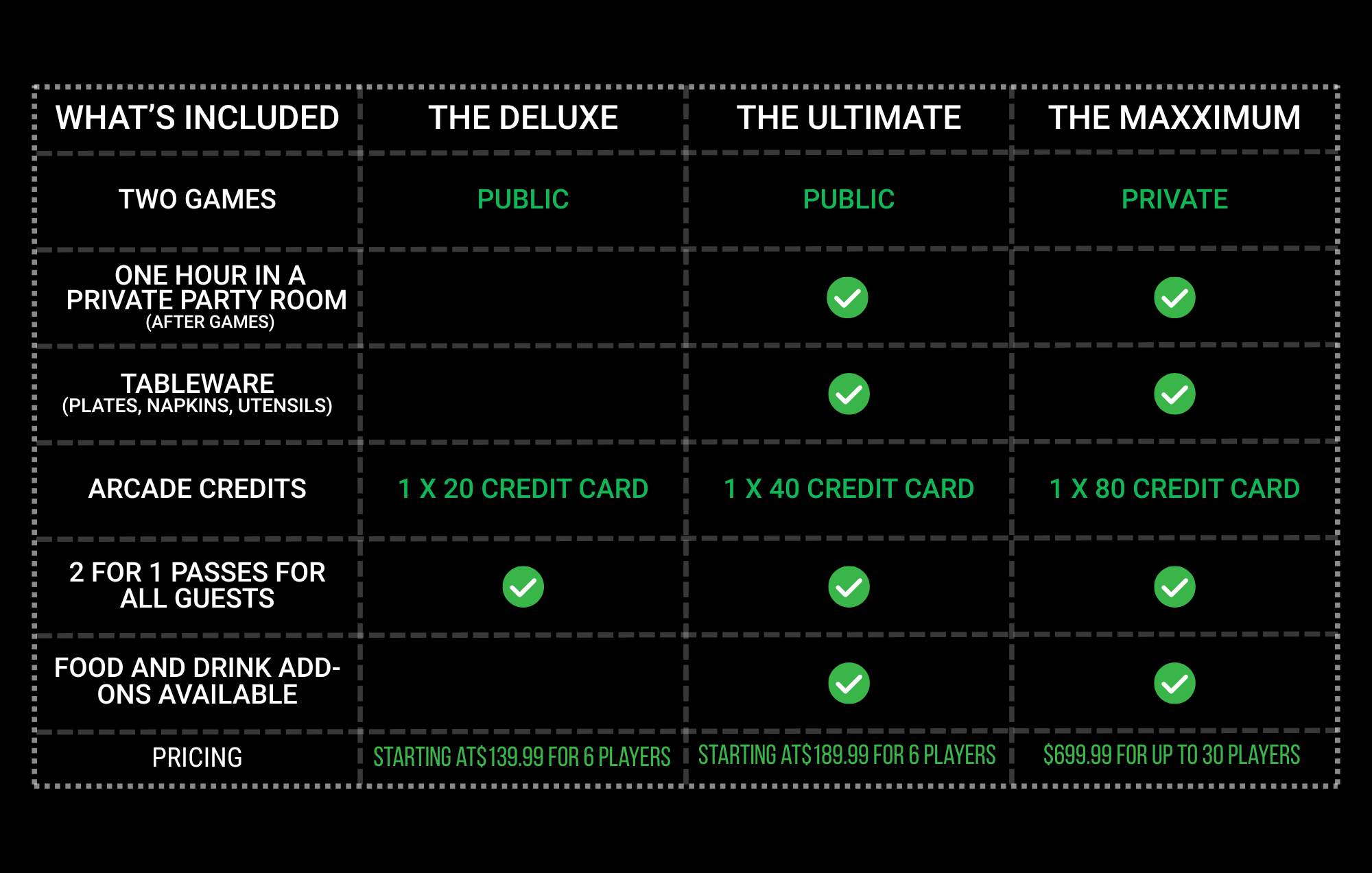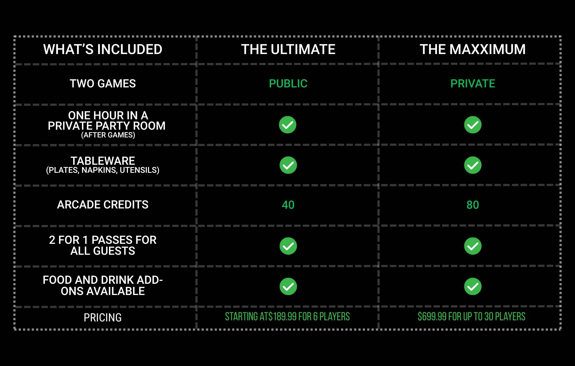 After the two LaserMaxx Missions, you will have access to your party room. This is the perfect time for food, drinks, cake, and presents! Our hosts will keep things running smoothly so you can focus on the fun!